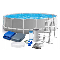 (NET) Intex 26726NP Prism Frame Swimming Pool Complete Set with Pump, Underlay Tarpaulin and Ladder and Extra Accessories