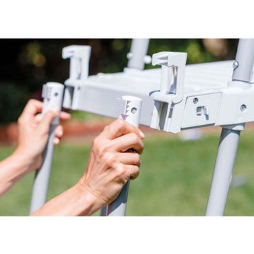 This Intex 28075 safety ladder for pools has three anti slippery steps on each side and it is suited for all above ground frame pools with 91 to 107 cm of height.