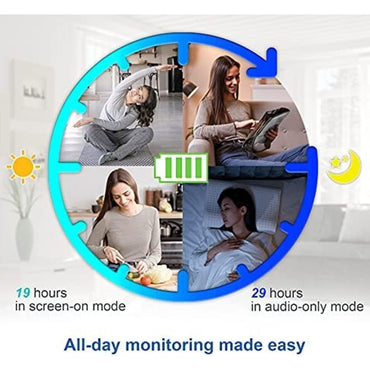 • Rechargeable battery with up to 19 hours of video streaming – Easily monitor your baby throughout the night on one charge with the industry’s best battery life with up to 19 hours of video streaming or up to 29 hours of audio only streaming.