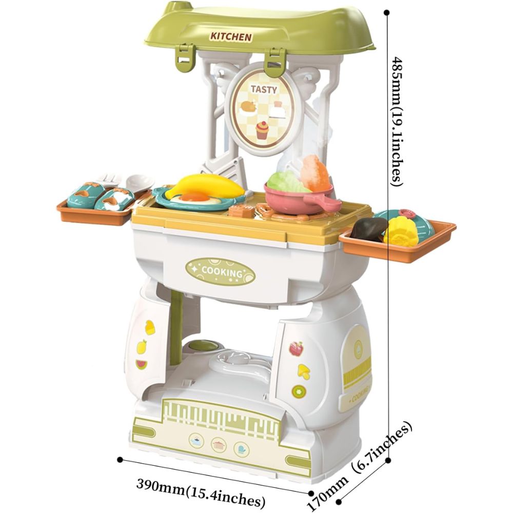 - This children's kitchen set is the perfect choice to foster a healthy environment for your child. Washing up and putting away the dishes after playtime helps promote good habits, demonstrates teamwork, and rewards the development of fine motor skills! Pretend play kitchen toys will encourage their critical thinking while playing with family and friends.