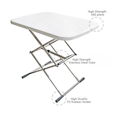 Multi Function Folding TableProduct details of Multi-Function Table Adjustable Folding TableLight weight, Portable, Easy to move.Foldable & AdjustableDurable construction quality, 5cm thickness topHigh strength stainless steel frameHigh strength toughness ABS...