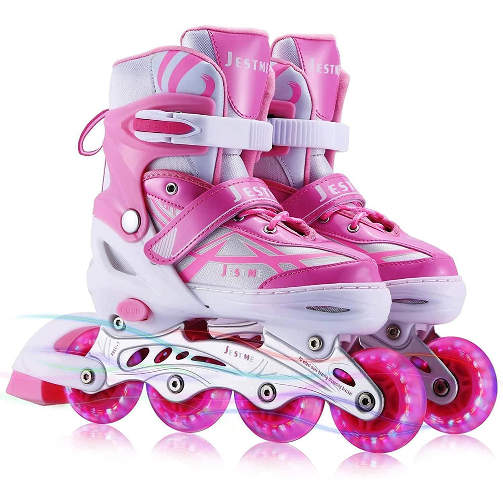 Description: Adjustable inline skates can be adjusted to different sizes by pushing a button as kid's feet growing to ensure years of fun. It is a great entry level skate...