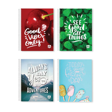 Description : OPP Picture 60 Gsm Product size : 21 x 27.5 cm Number of sheets : 48 sheets Ruling : seyes Type : spiral Available : Cherry, Sun Flower, Mountain, Moon,...