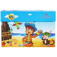Description:A large set for children's creativity, packed in a bright suitcase. The set includes 12 colored pencils, 12 wax crayons, 12 felt-tip pens, 12 pastel colors, 12 watercolor colors, a...