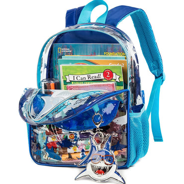 (NET) Shark Backpack Preschool Backpack With Lunch Bag And Pencil Case For Boys / 131015-3
