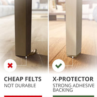 Simply wipe the furniture foot, remove the backing off the glue, and stick it on.