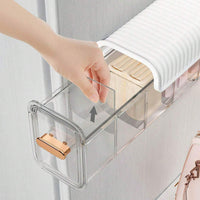 - This transparent wall mounted drawer organizer gives you a new concept of organizers when using. You will achieve an organized and refined living space. You can use the space as you like by removing the divided shelf,