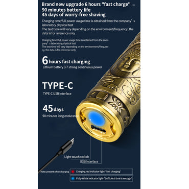 Description : 1. Mini cylinder body, portable and easy to shave2. Titanium alloy self-grinding blade to ensure long-term sharpness3. Individual Buddha head carving design4. USB fast charging, portable for home...