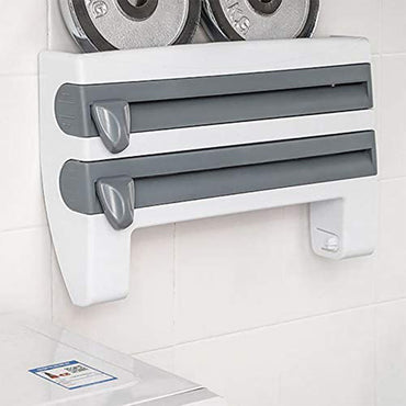 - SAVE MORE SPACE & ORDERLY PLACEMENT:4-in-1 wall mount paper holder is a smart choice to save more space in your small kitchen. With a minimalist design and contemporary finishes, this paper towel holder will look beautiful in any kitchen. Orderly put plastic wrap, tin foil and kitchen paper towels in a fixed place to solve the trouble of finding things.