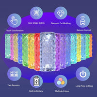 (NET) Crystal Lamp LED Rechargeable Touch Night Light Home Decor Creative Lights