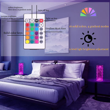 crystal bedside lamp is made of PC transparent material. Turn on this