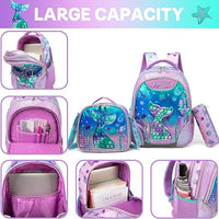 (NET) Mermaid Purple Backpack For Girls Set Of 3 Pcs