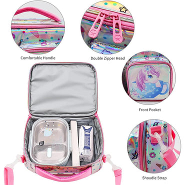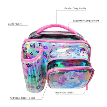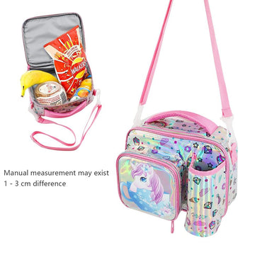 (NET) Kids lunch bag insulated lunch bag school nursery lunch bag double tier food lunch bag laser unicorn / 22049-UC