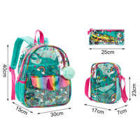 [3 in 1 Unicorn Backpack Size]Backpack:13"X11.8X6";Crossbody Bag:9"X6.7"X2.7";Pencil Case:9.8"X4.3"