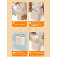 - The manual yogurt maker is very convenient to use. Just three simple steps: Pour the prepared yogurt into the filter, cover it, and refrigerate it for 24-48 hours before enjoying. The cooled filter will drain naturally, causing the yogurt to separate automatically. If you want a thicker consistency, you can use the spring to press.