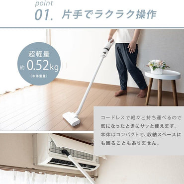 - 3-way cordless cleaner (can connect 1 or 2 extension pipes)