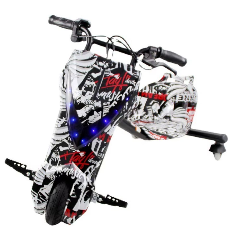 Comes packaged with | Bluetooth | Lights | Flag | Front drum brakes | Adjustable square frame.