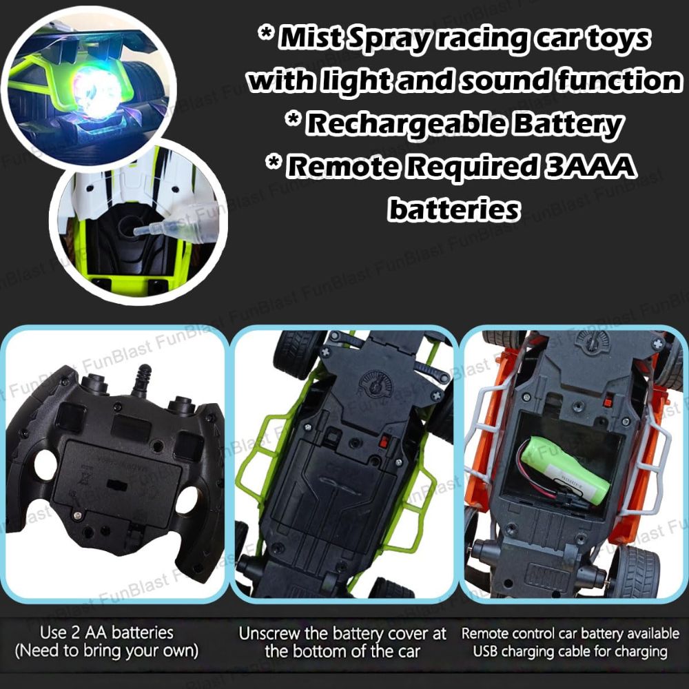 • In the box – Package includes remote control car with 1 remote, 1 USB charger wire – Mist pray racing car toys with light and sound function
